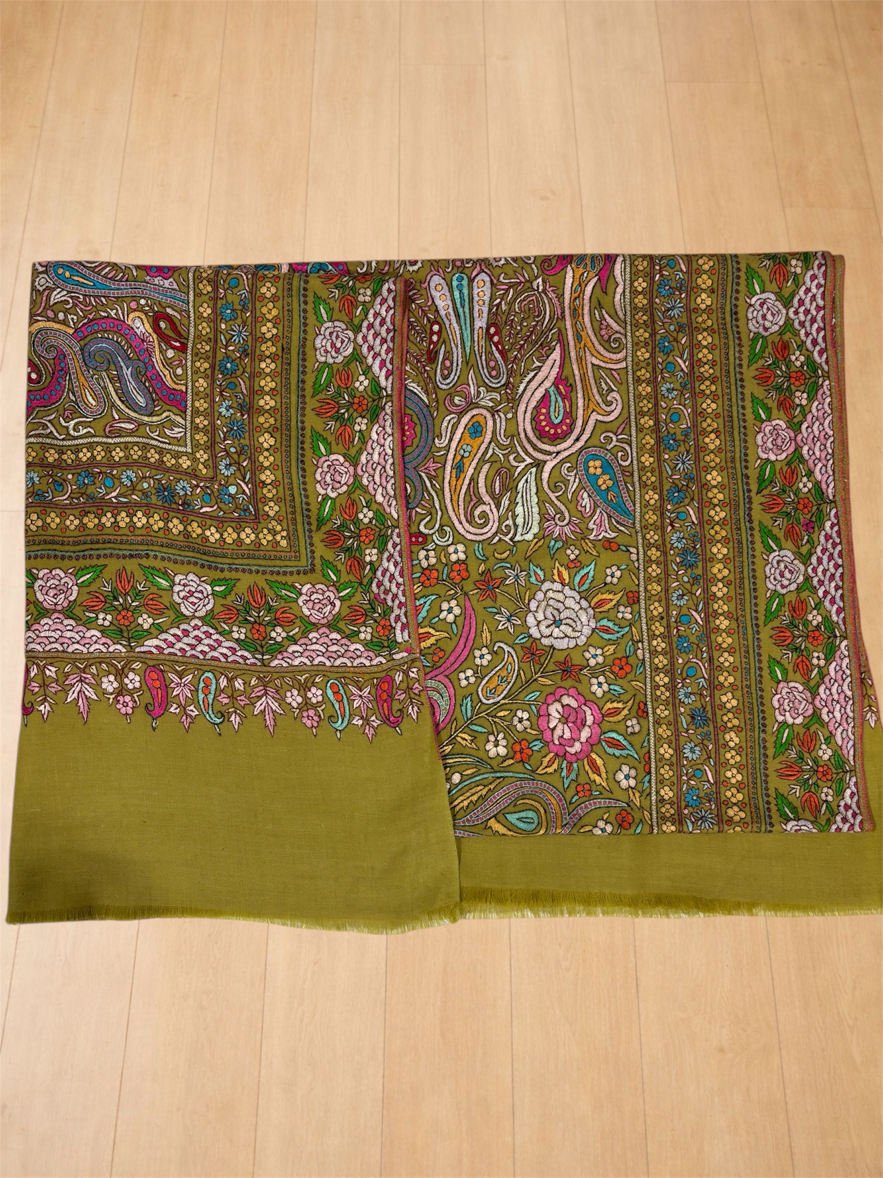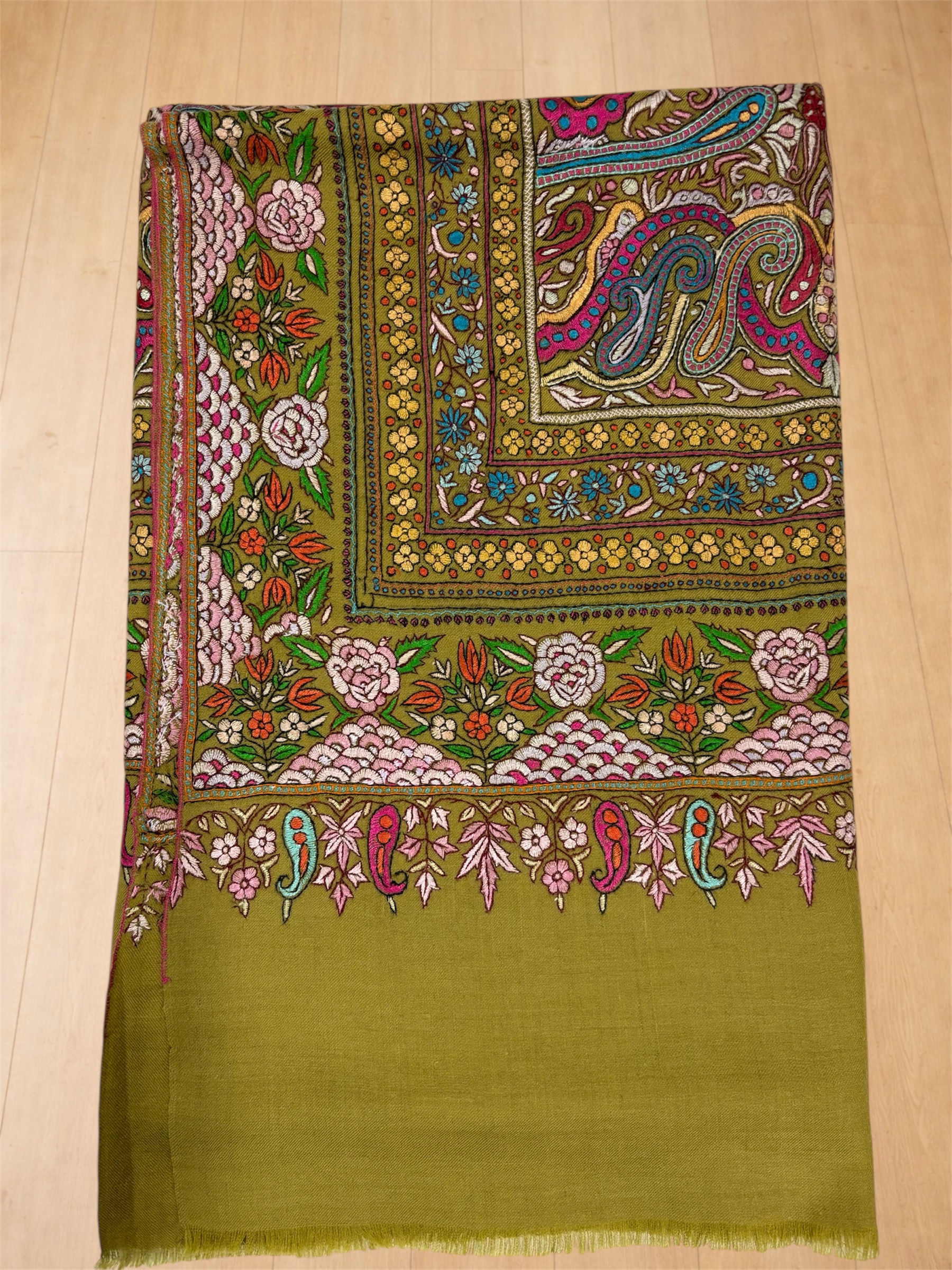 Green Pure Pashmina Shawl with Kashmiri Em6roidery – Handcrafted in Kashmir