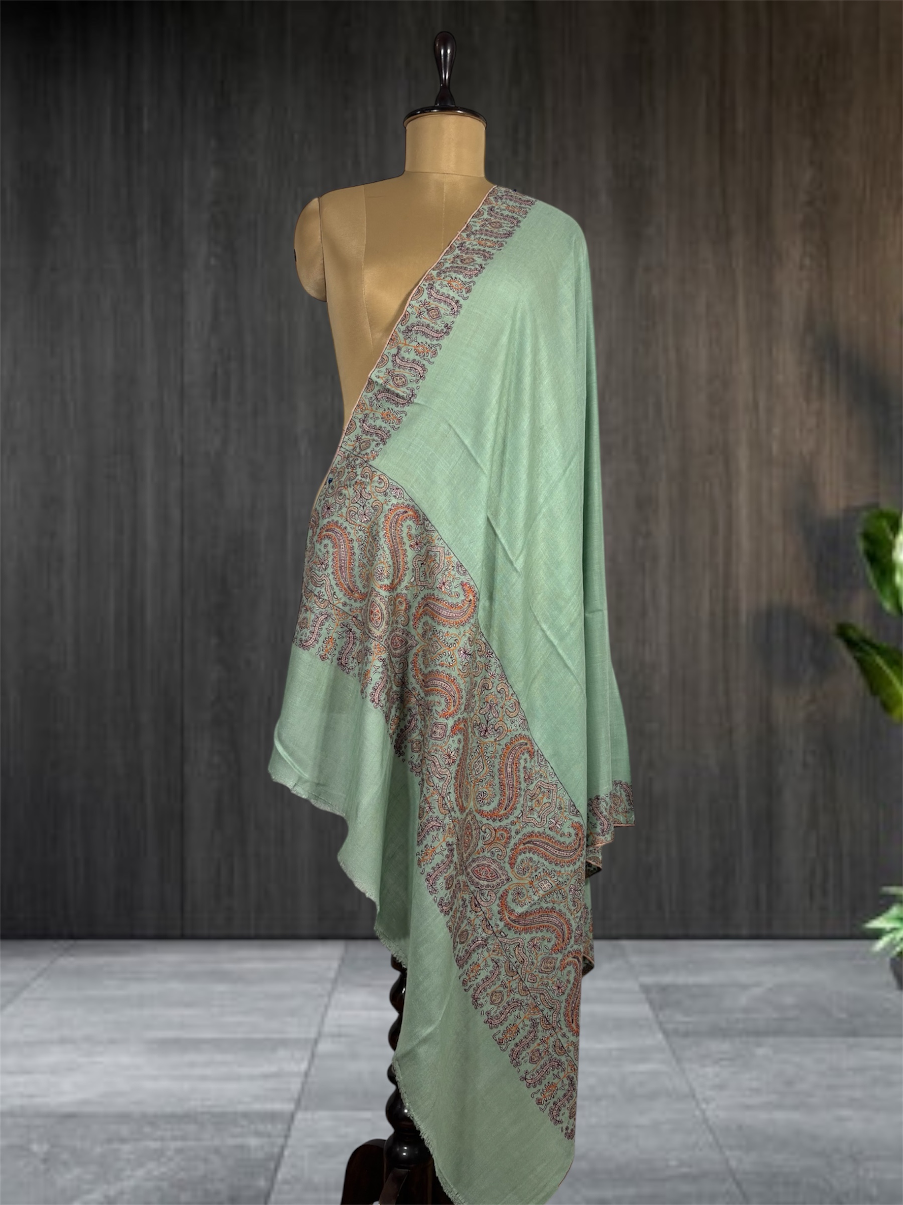 Mint Green Pure Pashmina Shawl with Paisley Border – Luxury1