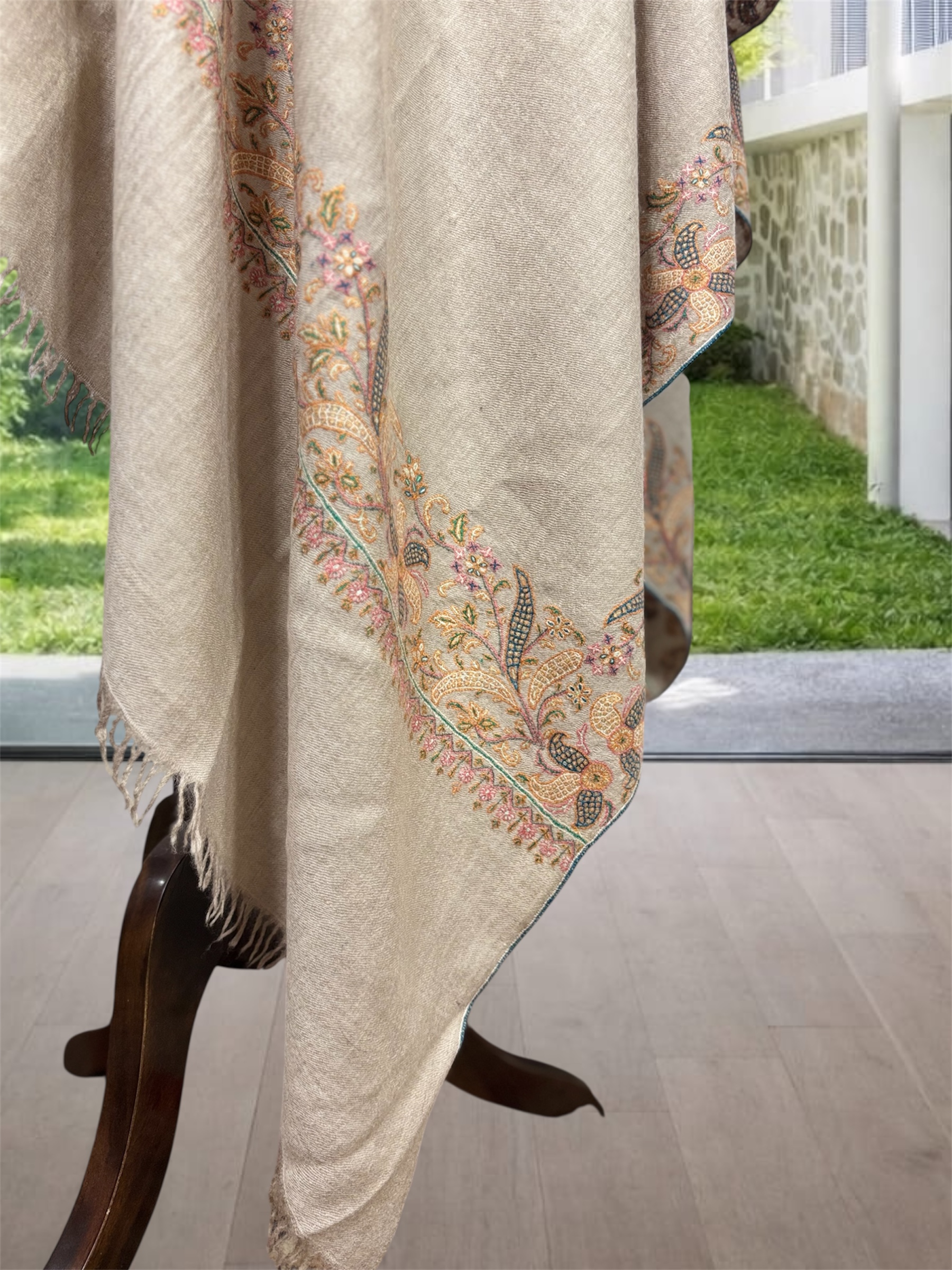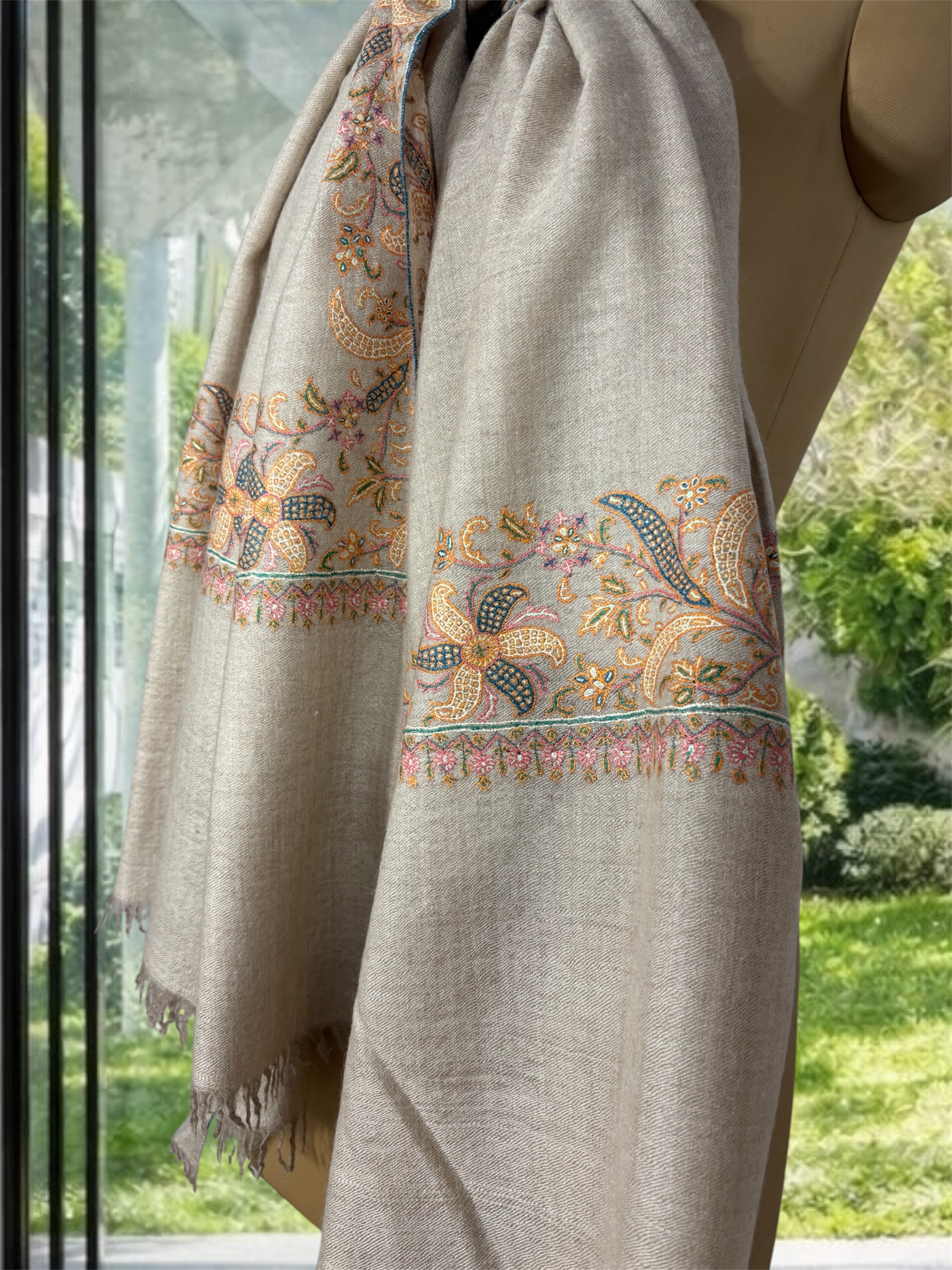 Natural Colour Pure Pashmina Shawl with Elegant Border – Luxury 2026 handcrafted from 100% pure pashmina wool, featuring a refined border design and soft, lightweight winter elegance.